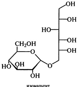 Он не токсичен и рекомендуется для применения в смеси с другими подсластителями. Применяется при производстве алкогольных напитков (50 мг/кг), жевательной резинки (20 мг/кг). Сахарозаменители. Многоатомные спирты (полиолы) относятся к группе сахарозаменителей. Среди них широкое применение в качестве подсластителей (заменителей сахара) нашли: ксилит (Е967), сорбит (Е420) и лактит (Е966). Их иногда называют сахарными спиртами: