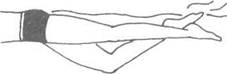 Рис. 12. Техника плавания способом кроль на груди но в воду (за исключением момента вдоха); бедра - у поверхности воды; мышцы живота и поясницы оптимально напряжены. Непрерывные попеременные движения ногами кролем помогают пловцу придать телу горизонтальное и обтекаемое положение, продвигают его вперед. Ноги выполняют встречные движения вверх-вниз с небольшим размахом, минимально сгибаясь в коленях; голени и стопы расслаблены; стопы повернуты носками немного внутрь и непрерывно вспенивают воду сзади пловца (рис. 13). Ноги выполняют движения от бедра. Вслед за бедром в движение вовлекаются голень и стопа. Движение ноги вниз носит захлестывающий характер и является основной рабочей фазой. В прак-