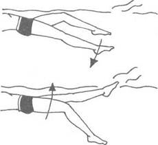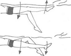 Положение тела и движения ногами. Тело пловца занимает в воде вытянутое, почти горизонтальное и хорошо обтекаемое положение