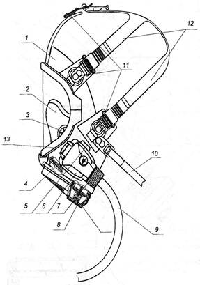 7. Спасательное устройство. Спасательное устройство (рисунок 4.15) предназначено для защиты органов дыхания и зрения пострадавшего человека при его спасении пользователем аппарата и выводе из зоны с непригодной для дыхания газовой средой.