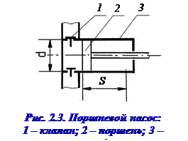 Объемные насосы – насосы, в которых перемещение жидкости (или газа) осуществляется в результате периодического изменения объема рабочей камеры. К ним относятся: поршневые насосы, пластинчатые, шестеренчатые, водокольцевые. Поршневые насосы (рис. 2.3). В поршневых насосах рабочий орган (поршень) совершает в цилиндре возвратно-поступательное движение, сообщая перекачиваемой жидкости энергию. Подача Q, м3/с, насоса определяется по формуле