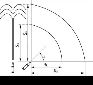 S в – максимальную высоту струи. Как правило, водяные стволы на пожарах работают не вертикально вверх, а под определенным углом α. Если при одном и том же напоре у насадка постепенно изменять угол наклона ствола, то конец компактной части струи будет описывать траекторию, которая называется радиусом действия компактной струи R к. Для ручных стволов эта траектория будет близка к радиусу окружности