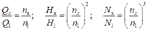 где N'н – мощность, вычисленная по формуле (7.2). Значения Н, N и η, вычисленные по формулам (7.2) и (7.4), характерны только при одной скорости n н вала насоса. Они изображены кривыми ав и a'в' на рис. 7.18. Для того чтобы определить поле мощности, потребляемой насосом, необходимо построить зависимости Н = f (Q) и N = f (Q) при частотах вращения вала n н2 и n н3. Предположив, что подача воды насосом возможна при 0,5 Н ном, выбирают величину n н3. Это соответствует n н3 @ 0,65 n н1. Величину n н2 выбирают в интервале от n н1 до n н3. Обозначим выбираемую скорость n н х , тогда соответствующие ей значения Q, Н и N определим на основании формулы теории подобия: