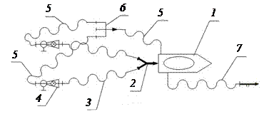 Для забора воды от водопроводной сети необходимо собрать напорно-всасывающую линию, как показано на рис. 8.21, затем следует: открыть вакуумный клапан 5 для выпуска воды из насоса; заполнить водой насос; закрыть вакуумный клапан 5; включить пожарный насос и, следя за режимом его работы, плавно открыть напорную задвижку 3, вода поступит в рукавную линию 4. При подаче воды в насос ПЦНН-40/100 от водопроводной сети вакуумный кран должен быть закрытым. В противном случае полость вакуумного затвора, масляного бака и вакуумного насоса будут заполняться водой. При поступлении воды в насос воздух из него будет выдавливаться по рукавной напорной линии. Подача воздушно-механической пены. Воздушно-механическая пена применяется для тушения легковоспламеняющихся жидкостей. Подача пенообразователя из бака, а воды из цистерны. Рассмотрим последовательность выполнения работы по схеме рис. 8.22.