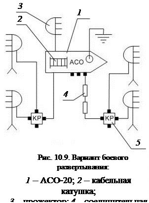 Каждый АСО укомплектован громкоговорящими установками и катушками с магистральным кабелем на стационарной и выносной катушках. По перечню оборудования, его техническим характеристикам в комплексе АСО выделяется автомобиль связи и освещения – АСО-20. Он установлен, как и автомобиль АГ-20, на шасси ПАЗ-3205. Боевой расчет на АСО-20 - 6 человек. Оборудование АСО-20 смонтировано в салоне автобуса, который разделен на два отсека: штабной и связи (задний). В штабном отсеке установлены два стола для работы штаба пожаротушения. На столах имеются телефоны, магнитофон, компьютер, принтер и другое оборудование. Для работы штаба вне салона на АСО-20 имеется выносной стол. В заднем отсеке на столах и стеллажах размещено оборудование для работы радиста и телефониста: радиостанции, телефонный коммутатор. Усилитель громкоговорящей связи. Источники электропитания. Для питания потребителей энергии на АСО имеется генератор и дизельная электростанция. Генератор ГТ40ПЧ6-2С. При 6000 об/мин он развивает мощность 20 кВт при напряжении 220 В. Величина тока 15 А и его частота (400±8) Гц. Привод его осуществляется от двигателя шасси базового автомобиля посредством КОМ и карданного вала. На АСО-20 имеется преобразователь напряжения 220 В 400 Гц в напряжение 220 В 50 Гц. Дизельная электростанция АД-4-230-ВМ1 является резервным источником питания для подачи напряжения 220 В 50 Гц в случае выхода из строя основной электроустановки. Дополнительные аккумуляторные батареи напряжением 12 или 24 В предназначены для питания цепей управления схемы изделия и оборудования связи. Для подзарядки аккумуляторных батарей на АСО используется источник питания ИП-220/12, включаемый в сеть 220 В 50 Гц и выпрямляющий постоянный ток 12 В. Электроосвещение места пожара. Оно осуществляется шестью прожекторами ИО-02-1500-02. Два из них установлены на прожекторной площадке на крыше автомобиля и могут подниматься на высоту Питание прожекторов осуществляется переменным током напряжением 200 В, частотой 400 Гц. Мощность, потребляемая одним генератором, равна 1,5 кВт. АСО-20 укомплектован мощными средствами радио- и телефонной связи. Количество установленных на автомобиле аппаратов и их радиус действия приводятся в табл. 10.5. Таблица 10.5