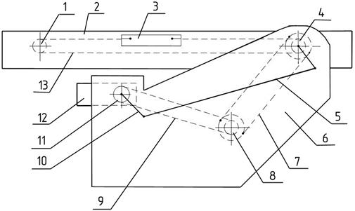 Рис. 11.21. Схема привода прибора блокировки: 1, 4, 8, 11 – звездочки; 2 – подъемная рама; 3 – кронштейн; 5 – тяга; 6 – поворотная