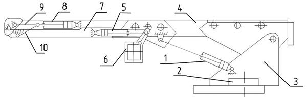 Рис. 11.26. Принципиальная кинематическая схема подъема и выдвигания люльки: 1 – гидроцилиндр подъема комплекта стрелы; 2 – механизм поворота; 3 – поворотная