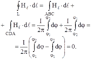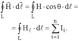Циркуляцией вектора напряженности магнитного поля по замкнутому контуру L (или просто циркуляцией вектора напряженности магнитного поля) называют интеграл