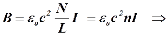 Интегрируя по всем виткам, для индукции магнитного поля внутри соленоида окончательно получим