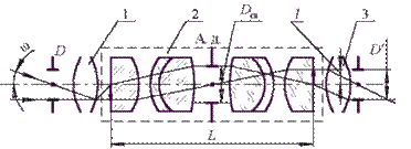 Аналіз формул з (2.6) по (2.7) свідчить, що підвищенням показників заломлення середовищ між лінзами обертаючої системи, а також до і після цієї системи можна досягти підвищення коефіцієнта інформативності ендоскопа, тобто розробити ендоскоп з великим кутовим полем і меншим діаметром. Одночасно при рівних значеннях інваріанта Лагранжа-Гельмгольца можна добитися і збільшення довжини обертаючої системи, оскільки при збереженні незмінними діаметрів лінз при переході до просторів з показниками заломлення, відмінними від одиниці, виходить зростання фокусних відстаней пропорційно показникам заломлення. Цей перехід може бути здійснений заповненням простору перед і за обертаючою системою, а також між її лінзами скляними плоскопаралельними пластинками з товщиною, рівною фокусним відстаням лінз. Таким чином, необхідно ввести три додаткові оптичні компоненти (плоскопаралельні пластини). Існує велике число різних оптичних схем обертаючих систем ендоскопів. У роботі [22] приведений порівняльний аналіз восьми часто використовуваних схем, для яких проведена корекція трьох подовжніх аберацій (сферичної, хроматизму положення і кривизни зображення) при виконанні наступних додаткових умов: лінійне збільшення - Результати аналізу представлені в таблиці 2.1, де приведені числові значення деяких параметрів, що характеризують найбільш важливі властивості оптичної системи: якість зображення (