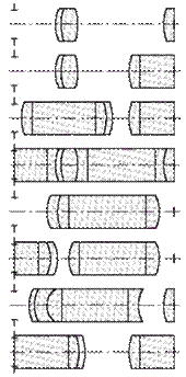 Підвищення значення Прості стрижнеподібні лінзи можуть використовуватися як колективи, що погоджують положення зіниць об'єктивів обертаючих систем. При розрахунку оптичних систем необхідно враховувати, що кривизна зображення в двоопуклій лінзі з рівними радіусами і максимально рознесеними головними площинами дещо більша в порівнянні з тонкою лінзою. При використанні стрижнеподібних колективів в оптичній системі ендоскопа довжина або оптичні характеристики останнього можуть бути покращені в порівнянні з системою, що включає тонкі колективи. Найбільше підвищення характеристик в цьому випадку досягається при використанні двоопуклої лінзи, виконаної із скла з високим показником заломлення, з радіусами кривизни і товщиною, рівними між собою. При розробці оптичних схем ендоскопів вельми вигідно скористатися конструктивною схемою, що представлена на рисунку 2.14, складається з трьох лінз, середня з яких виконана стрижнеподібною, а в крайніх лінз поверхні, звернені до середньої лінзи, є конфокальними по відношенню до предмету і зображення.