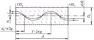 Таким чином, при параболічному градієнті показника заломлення траєкторія меридіонального променя в параксіальної області є синусоїдою. Якщо вхідний промінь паралельний оптичній осі градана, як на рис. 2.15, тобто