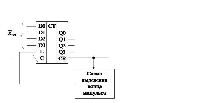 2. С загрузкой в счетчик дополнения Двоичный счетчик перед началом счета и в конце каждого импульса переноса загружают кодом, соответствующим дополнению Ксч до 2m, где m – число разрядов счетчика.