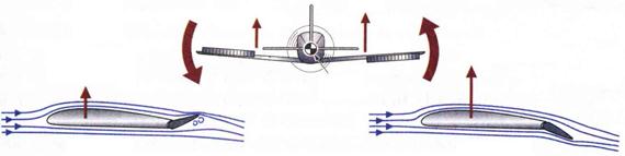 • перемещение относительно продольной оси, называемое креном (наклон консолей крыла влево или вправо); и