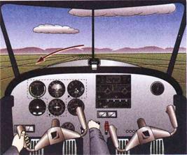 | (a) Стабилизируйте пространственное положение самолета. Внимательно наблюдайте за воздушным пространством. (b) Выберите ориентир на горизонте. (c) Плавно нажмите на левую педаль управления рулем направления. Носовая часть самолета повернется влево, а шарик указателя скольжения отклонится вправо. |