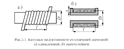 Индуктивность (параметр катушки индуктивности, мкГн) зависит от диаметра и длины катушки, диаметра провода и числа витков катушки, используемых сердечника и экрана. Точный расчет катушек индуктивности обычно затруднен, поэтому на практике используют приближенные формулы. Например, для однослойных сплошных катушек без сердечника при условии, что длина намотки l на цилиндрический каркас составляет от 0,5 до 5 диаметров намотки D, с точностью 2 – 5% применима формула
