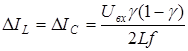 где ΔIC – амплитуда тока конденсатора, имеющего треугольную форму (см. диаграмму iL на рис. 2). Максимум произведения γ(1-γ) соответствует значению γ = 0,5. Следовательно, максимальное значение амплитуды тока конденсатора будет