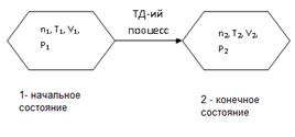 где Р – давление, V - объем, n - количество молей идеального газа, Т – абсолютная температура. R - коэффициент пропорциональности, который называется универсальной газовой постоянной. В физической химии обычно используется величина R, равная 8,314·Дж/моль К. Физический смысл универсальной газовой постоянной – работа, которую совершает 1 моль газа при увеличении температуры на 1 К. Общее уравнение состояния термодинамических систем имеет вид ¦(P,T,V)=0. Для большинства реальных систем связи между параметрами состояния сложны и часто не могут быть представлены в аналитическом виде. Поэтому при выполнении термодинамических расчетов с реальными веществами на практике пользуются таблицами и диаграммами состояния, построенными на основании экспериментального изучения свойств веществ. Изменение одного параметра влечет за собой закономерные изменения других параметров в соответствии с уравнением состояния, что вызывает термодинамический процесс.