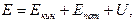 1.2. ВНУТРЕННЯЯ ЭНЕРГИЯ, теплота, работа Любая материальная система состоит из множества частиц различной природы (атомов, молекул, ионов и т. п.), находящихся в непрерывном движении. Количественной характеристикой движения, а, соответственно, и материальных систем, является энергия. Энергия Е любой термодинамической системы включает в себя следующие составляющие: