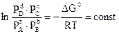 Рассмотрим ЗДМ для газовой реакции Условия: - все реагенты-участники реакции – газы; - все газы идеальные, для которых справедливо уравнение зависимости изменения энергии Гиббса от давления - процесс протекает при постоянной температуре, т.е. Т=const. В этом случае можно записать: