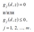 где функции fi (d, z, y) получены из уравнений материальных и тепловых балансов для отдельных машин и аппаратов технологической линии и соотношений связи между ними; d – вектор конструктивных переменных технологического оборудования; z – вектор режимных переменных технологической линии (вектор переменных, которыми можно будет непосредственно управлять при работе технологической линии); y – вектор состояний (вектор концентраций, температур осуществления технологических стадий, расходов потоков и т.п.). Обычно из уравнения y определяется как однозначная функция fi (d, z,). Далее, при проектировании должен быть соблюден ряд требований-ограничений, как правило, в форме равенств и/или неравенств: