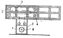 Рис. 23. Конвейерные шкафы расстойки Т1–ХРГ–30 и Т1–ХРГ–50: 1 – загрузочное окно; 2 – каркас шкафа Т–образной формы; 3 – цепной конвейер; 4 – цепные звездочки; 5 – разгрузочное окно; 6 – приводной блок цепного конвейера