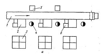Рис. 71. Схема работы упаковочного автомата АР2Ж для фасовки сухарей в пакеты из полимерной пленки: 1 – элеватор; 2 – ковш элеватора; 3 – рулон пленки; 4 – дозатор; 5 – бункер; 6 – питатель;