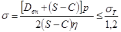 где S – толщина стенки обечайки, мм; р – расчетное внутреннее давление в аппарате, (атмосферное) Н/м2; Dвн – внутренний диаметр аппарата, мм; j - коэффициент прочности сварного шва в продольном направлении, 0,9; sдоп – допустимое напряжение на растяжение, Н/м2; С – прибавка на износ к расчетной толщине стенки, мм.