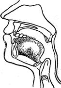 Звуки К, Г, X. При звуках К и Г сильно выгнутая спинка языка касается твердого нёба. Нёбная занавеска поднята. Выдыхаемая струя воздуха прорывается между спинкой языка и нёбом, от этого образуются взрывные звуки К и Г, если же между нёбом и спинкой языка остается щель, то получается длительный звук X. Нёбная занавеска при образовании звуков К, Г, X поднята. При звуке Г голосовые связки вибрируют.