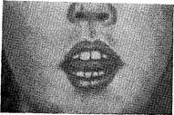 Рис. 15. Артикуляция М Рис. 16. Артикуляция Л (снаружи) (снаружи) Звук Л. Кончик языка прикасается к верхним передним зубам, корень языка приподнят, нёбная занавеска поднята, голосовые связи вибрируют. При звуке Л мягком кончик языка прикасается к верхним альвеолам, весь язык более напряжен, чем при звуке Л твердом. Звуки З, С. Широкий кончик языка касается нижних зубов и отчасти нижних десен, а передняя часть спинки языка с небольшим продольным желобком на ней приподнимается к верхним деснам и образует с ними узкую щель. Боковые края языка плотно прижимаются к верхним коренным зубам. Выдуваемый воздух проходит по желобку языка между зубами и образует звуки 3 и С. Рот слегка раскрыт (на три миллиметра), нёбная занавеска поднята; при звуке 3 голосовые связки вибрируют. При мягких 3 и С средняя часть спинки языка больше приближается к твердому нёбу, в звучании эта мягкость выражается в некотором повышении тона.