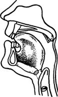 Рис. 12. Артикуляция К, Г, X: а — снаружи; б — внутри.
