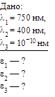 Пример 5. Определите энергию фотонов, соответствующих наиболее длинным (l1 = 750 нм) и наиболее коротким (l2 = 400 нм) волнам видимой части спектра, и энергию фотона, соответствующего рентгеновскому излучению (l3 = 10-10 м).