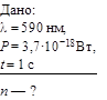 Энергия светового излучения выражается формулой W = Pt. С другой стороны, W = e N, где e — энергия фотона (e = h n), N — число фотонов. Приравнивая правые части двух уравнений, выражающих энергию светового излучения, имеем: h n N = Pt, откуда