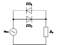 При отрицательной полуволне диод VD 1 закрыт, поэтому амплитудное значение обратного напряжения на диоде будет равно амплитуде входного напряжения: