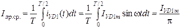 Для выбора типа полупроводникового диода рассчитаем среднее за период значение тока, протекающего через диод. Для положительной полуволны получим: