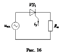 Указанным требованиям удовлетворяет кремниевый силовой тиристор марки КУ201Ж с параметрами: U обр.maх = 200 В; I ос.ср.max = 2 А; U ос = 2 В; U у.от = 6 В; I у.от = 100 мА; I обр = 5 мА; I зс = 5 мА; T к = 85 оС.