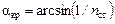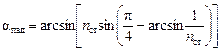 Используя выражение (1.1) для падения на призму и выражение (1.3) для падения на грань ПВО с учетом того, что изображенная боковая проекция призмы представляет собой равнобедренный прямоугольный треугольник, получим формулу зависимости угла падения на призму, при котором реализуется критический угол ПВО αкр, от показателя преломления материала призмы: