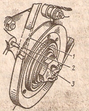 Однако, прежде чем установить на верхнюю торцевую плоскость блока цилиндров с уложенной на нее уплотнительной прокладкой головку блока, собранную заранее с клапанным механизмом и с распределительным валом, предварительно установите взаимное угловое положение коленчатого и распределительного валов. Для этого, убедившись в том, что сохранилась предварительная установка поршня первого цилиндра в в.м..т. В конце такта сжатия, вращайте распределительный вал до тех пор, пока риска на фланце распределительного вала (см. рис.)