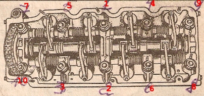 При разъединенном цепном приводе, но не снятой еще с блока цилиндров головке, не повертывайте коленчатый или распределительный вал в лю6ом направлении, даже на самый незначительный угол. Невыполнение повлечет к повреждению головки клапанов об поршни. После проверки и замены поврежденных и изношенных деталей установку и крепления головки цилиндров на блоке производите в обратной последовательности. При этом: