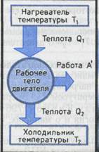 | Изменение внутренней энергии системы ΔU при переходе ее из одного состояния в другое равно сумме работы внешних сил А и количества теплоты, переданного системе Q