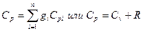 Здесь Недостающие параметры состояния газовой смеси (P,V,T) в характерных точках цикла (1,2,3,4 и 5) определяются по уравнению состояния Показатель политропы Процессная теплоёмкость где для смеси Значения теплоёмкостей Таблица 1. Мольные теплоёмкости газов по данным молекулярно-кинетической теории строения газов