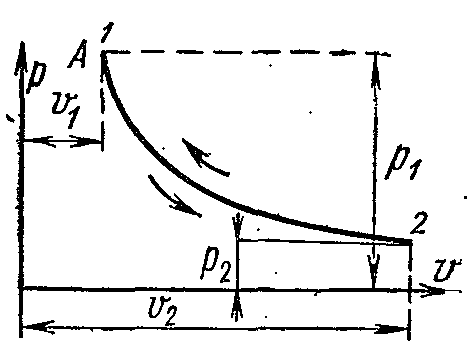 При постоянной температуре объём газа изменяется обратно пропорционально его давлению. На pv- диаграмме изотермы идеального газа представляются равносторонней гиперболой. Площадь под кривой процесса численно выражает механическую работу в данном процессе. Работа 1 кг идеального газа находят из уравнений: