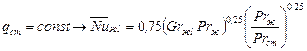 В этих формулах за определяющую температуру принимается температура жидкости вдали от нагретой поверхности; за определяющий размер – длина поверхности, отсчитываемая от начала теплообмена. Формулы получены для теплоносителей с числом Прандтля от 0,7 до 3×103, и ими можно пользоваться при Для определения средних коэффициентов теплоотдачи при свободном турбулентном движении жидкости вдоль вертикальной стенки, которое наступает при числах