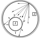 Рис. 18.3. Схема теплообмена излучением между двумя телами, одно из которых находится внутри другого