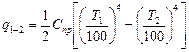 Тепловое излучение (плотность теплового потока), полученное второй пластиной, будет равно разности эффективных излучений
