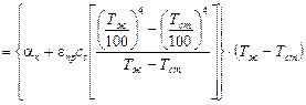 Приравнивая (*) и (**) находим значение коэффициента теплоотдачи излучением