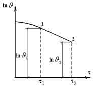 Рис. 20.2. Кривая изменения натурального логарифма избыточной температуры при регулярном режиме теплопроводности