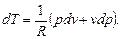 Адиабатным называется процесс, осуществляемый без подвода и отвода теплоты: q = 0 и dq = 0. Этот процесс можно получить при расширении и сжатии газа в абсолютно изолированном цилиндре или при течении его с большими скоростями в коротких трубках (насадках). Так как d q = 0, то уравнение первого закона термодинамики для адиабатного процесса принимает вид du + dl = 0, или du = - dl. (6.20) Из формулы видно, что в адиабатном процессе внутренняя энергия и работа имеют противоположные знаки. Отсюда следует, что работа расширения совершается за счет внутренней энергии, величина которой уменьшается. Наоборот, при работе сжатия внутренняя энергия возрастает. Чтобы получить уравнение для адиабатного процесса, выразим уравнение первого закона в адиабатном процессе через параметры газа cvdT = pdv = 0. (6.21) Продифференцируем уравнение состояния газа pdv + vdp = RdT, откуда