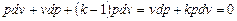 так как R = ср - сv и ср / сv = k - показатель адиабаты. Разделив обе части полученного уравнения на pv, получим