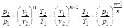 Для политропных процессов с показателем 1< n < k можно написать зависимости между параметрами, аналогичные зависимостям адиабатного процесса: